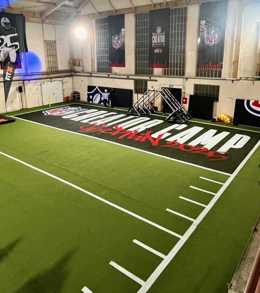 Ihr Logo auf dem Spielfeld – das ist Branding der Extraklasse. Unsere maßgeschneiderten Lösungen ermöglichen es, Ihre Marke direkt auf dem Kunstrasen zu präsentieren und so Teil des Spiels selbst zu werden. Mit modernsten Techniken wie dem Sprühen oder Einkleben von Logos und Werbebotschaften, passen wir das Branding exakt Ihren Vorstellungen und den Eventanforderungen an. Auch großflächige Umsetzungen – wie etwa eine komplett gestaltete Football-Endzone für die NFL – realisieren wir präzise und in höchster Qualität, sodass selbst anspruchsvollste Branding-Wünsche perfekt umgesetzt werden. Diese innovative Form der Platzierung bietet nicht nur eine außergewöhnliche Sichtbarkeit, sondern schafft auch eine direkte emotionale Bindung zu den Zuschauern und Spielern, da Ihre Marke im Mittelpunkt des Geschehens steht.